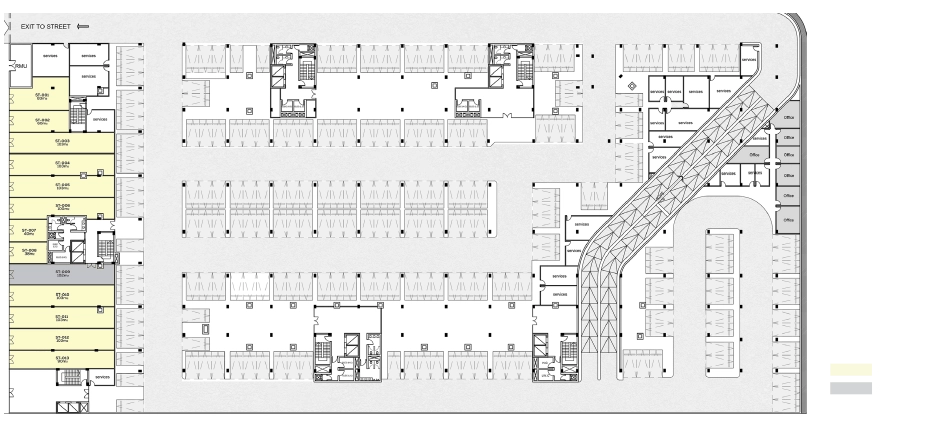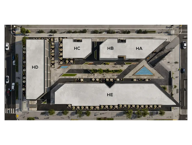 The development is composed of two linear buildings and a rear wing, arranged to clearly separate public and private functions while maintaining strong visual and spatial orientation. This layout enhances clarity, ease of navigation, and operational efficiency throughout the project.